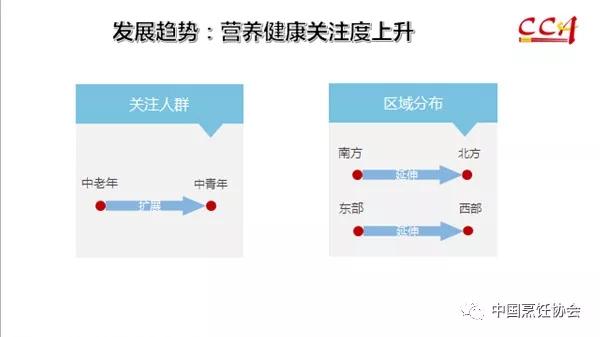 经济繁荣发展和可支配收入增加所带来的一个积极结果,就是消费者有更多的钱可以花在营养健康方面,更加注重饮食对身体健康水平的提升。人们逐渐认识到营养健康问题的重要性,越来越关注饮食中所含的各种成分,并尝试通过调节饮食来预防或控制肥胖、糖尿病、高胆固醇、高血压等健康问题,愈来愈注意在日常饮食上要低油、少盐、低(无)糖。而且,关注人群正从中老年逐渐扩展至中青年消费群体,区域也从南方向北方、东部向西部延伸,且在一二线城市人群中最为明显。