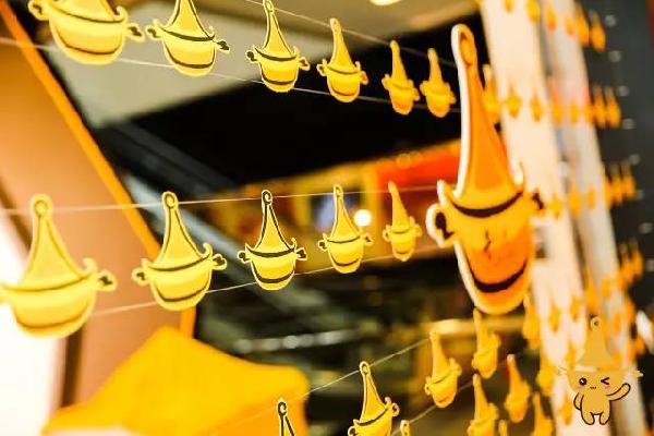 2017年,黄记煌4.0门店在上海亮相。步入门店,活泼可爱的小黄锅玩偶,造型别致新颖的小黄锅,色彩明亮暖心的琉璃黄,简约时尚的店面装修,无一不让人们眼前一亮 。从平面延展到空间装饰设计中,大面积的“琉璃黄”绚丽夺目,使得品牌瞬间生动活泼起来。