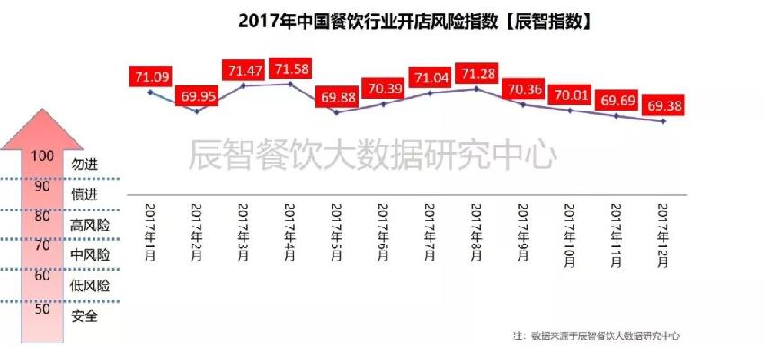 2017年餐饮行业开店风险处于高位,但在下半年行业整体开店风险已经稳步下降。
