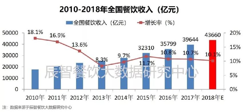 辰智指数预测2018年餐饮行业将继续保持稳定增长,新店的开店风险呈现降低趋势,餐饮创业回归理性,预计年度增长率10%左右 ,全国餐饮收入有望突破4.3万亿 。