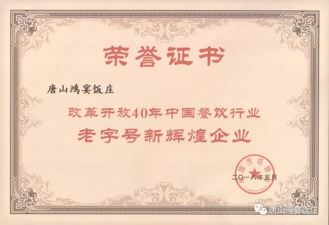 鸿宴饭庄-荣获改革开放40年中国餐饮行业“老字号新辉煌企业”