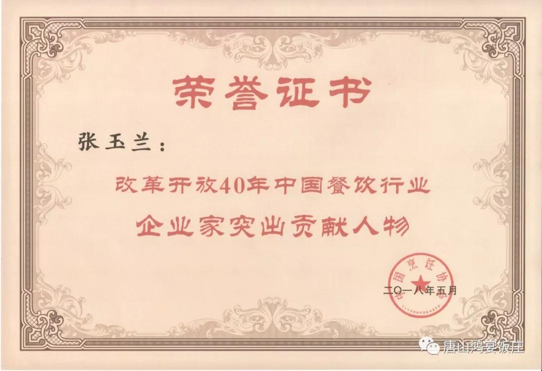 董事长张玉兰荣获餐饮行业“企业家突出贡献人物”