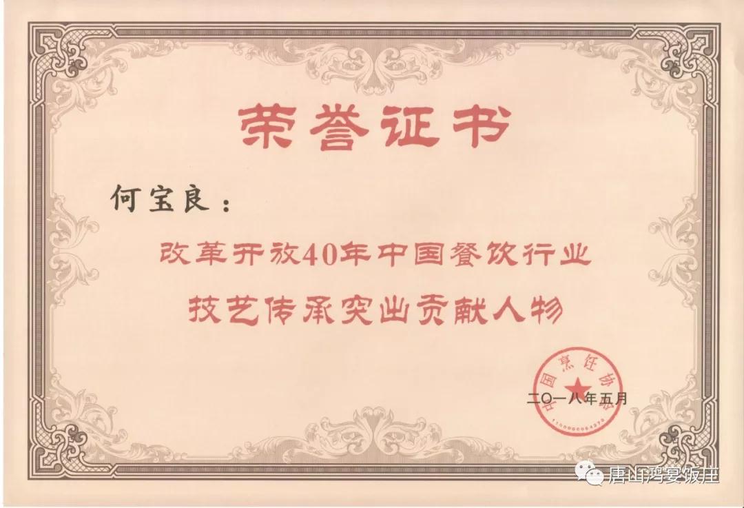 享受国务院特殊津贴专家、总经理何宝良荣获餐饮行业“技艺传承突出贡献人物”