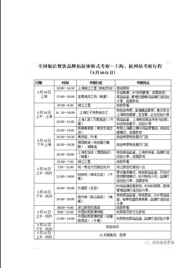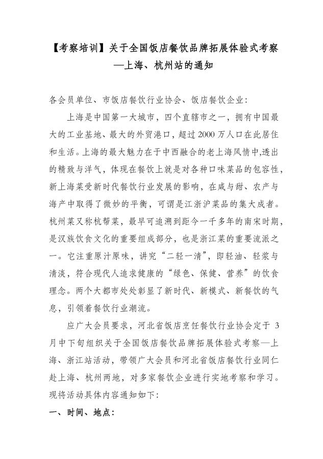 【考察培训】关于全国饭店餐饮品牌拓展体验式考察— 上海、杭州站的通知