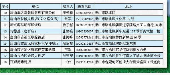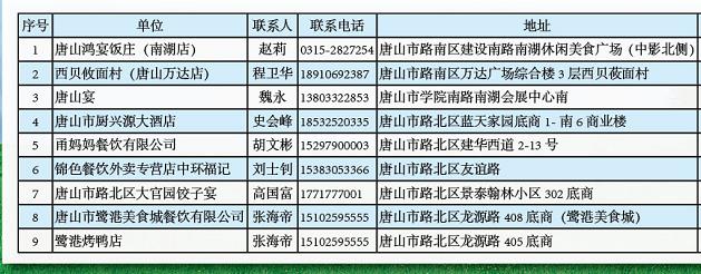 唐山疫情防疫期间社会化团餐供餐重点企业名单