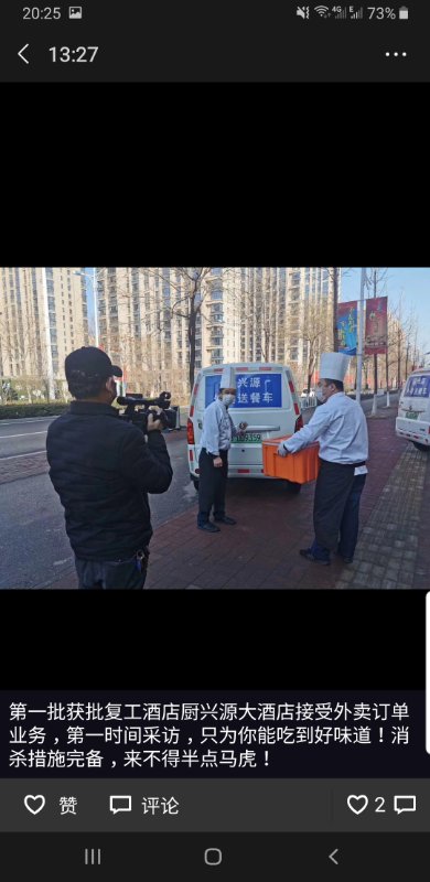 第一批复工酒店厨兴源大酒店接受外卖订单业务,第一时间采访,只为你能吃到好味道!消杀措施完备,来不得半点马虎!