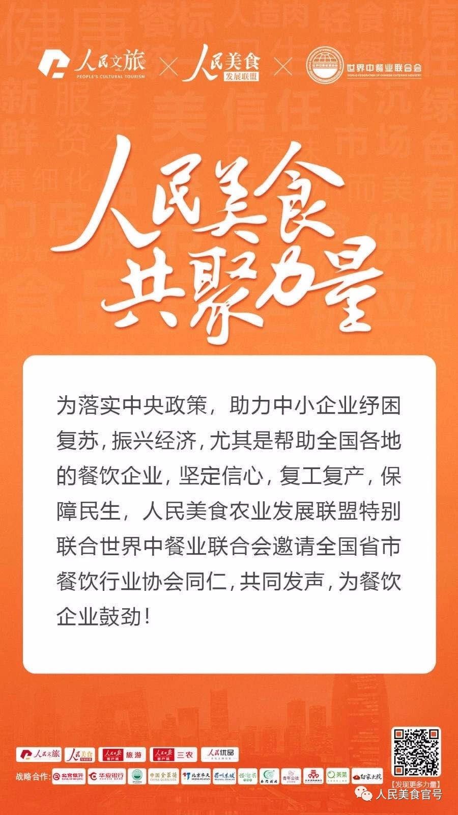 为落实中央政策,助力中小企业纾困复苏,振兴经济,尤其是帮助全国各地的餐饮企业重拾信心,复工复产,保障民生,人民美食农业发展联盟特别联合世界中餐业联合会邀请全国各地饮食行业协会同仁,本着联合互助的精神,共同发声,为餐饮企业鼓劲!