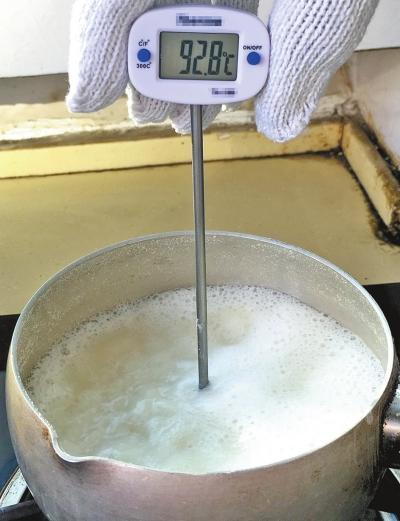 当温度接近93℃时,豆浆已出现沸腾的现象。 核心提示80℃的豆浆会沸腾,喝了或致人中毒?饼干一点就燃,是因为含油量太高,吃了不健康?最近,这两条与食品相关的传言,成为微信朋友圈的热点话题。那么,这些说法都是真的吗?大河报记者为你实验验证。 实验1网络传言:豆浆即使沸腾也未必真熟? 最近有报道称,王女士的孩子因为喝了未完全煮熟的自磨豆浆,不幸中毒身亡。 喝豆浆为啥会中毒?网络有传言称,当豆浆加温到80℃时会出现假沸现象。此时,生豆浆中所含的有毒物质并未被完全破坏。像胰蛋白酶抑制剂,只有继续加热沸腾,才会被完全破坏。 记者实验 80℃豆浆几乎没反应90℃左右开始沸腾 豆浆真的存在假沸现象吗?大河报记者决定亲自实验。记者将黄豆称量并榨汁过滤,然后将其置于锅中加热烹煮,同时通过厨房专用的电子温度计实时监控豆浆温度的变化情况。 刚开始加热不久,豆浆温度变化显著,随后开始匀速上升。当温度达到网传的80℃时,豆浆并没有出现沸腾的现象,只是锅边稍有小泡冒出。 记者继续观察,当温度达到90℃时,锅里的豆浆开始有了变化,冒泡的现象变得愈加明显。当温度接近93℃时,豆浆在锅内翻滚得非常厉害,若不是通过温度计来判断,很有可能会认为豆浆已经煮熟了。其实,此时距离100℃还有一定距离。 另外,记者还专门对一款号称“经预热、粉碎、煮浆、延时熬煮全自动完成”的家用豆浆机制出的豆浆进行了测温实验。在其发出“滴滴滴……”的警报声后(提示豆浆已做好),立马开盖拿温度计测温,显示为:98.2℃。 专家建议 豆浆沸腾后,至少得再煮10分钟以上 通过实验证明,豆浆确实存在假沸现象,且未煮熟的豆浆中的确存在含量较高的有害物质。国家粮食局科学研究院副研究员韩飞,曾对假沸的豆浆样本进行取样检测。其中,胰蛋白酶抑制剂的失活率是40%,未达到100%失活率的要求,“在这种情况下食用是不安全的”。 使用全自动豆浆机制出的豆浆也不足100℃,食用起来到底安全吗?某品牌豆浆机的工作人员说,豆浆机正常工作到结束,是可以完全煮熟的,可放心食用。对于豆浆机来说,100℃并不能算作“熟不熟”的依据,90℃就能长时间灭菌,“我们没有接到过因豆浆不熟引发伤害的报告”。 [实验结论] 生活中怎样煮豆浆才能降低有害物质对人体的伤害呢?郑州人民医院营养科主任张晴说,豆浆必须在煮沸腾后,再煮15到20分钟,至少也得10分钟,饮用才安全。同时,大豆最好在浸泡后再磨浆,比干豆磨浆更有利于营养物质的消化吸收。 另外,也有读者顾虑,豆浆煮的时间过长,营养物质就会流失。对此,张晴表示,对于豆浆来说,主要的蛋白质、脂油性的大豆异黄酮等物质都很稳定,B族维生素也能耐受120℃的高温,而最易损失的维生素C在豆浆中含量极小,所以无需担心。 如果读者在家使用豆浆机仍感不放心,也可以放入锅内再煮10分钟以上。 实验2网络传言:饼干一点就燃,是含油量太高? 日前,网传的一段视频引来热议:一块散装饼干放在纸上,纸会被浸上油。视频中的实验人员用打火机点饼干,饼干竟燃起火苗。 不少网友看完视频后得出结论,这是因为饼干含油量高,还有人表示要用“能否点燃”作为判断饼干含油量高低、进而判断是否健康的标准。这个看似简单易行的标准到底靠谱不?记者为您实验验证。 记者实验 饼干能点燃,火焰大小和脂肪含量成正比 记者从超市购买了三种饼干,分别为脂肪含量25%的某品牌“谷物烘焙饼干”,脂肪含量36%的某品牌“梳打饼干”,脂肪含量40%的“普通韧性饼干”。 记者将三种饼干依次用打火机点燃,结果发现,三种饼干均可顺利起火并燃烧一段时间,火焰大小基本与脂肪含量成正比,即普通韧性饼干点燃后火焰最大,谷物烘焙饼干火焰最小。燃烧部分均变成炭黑色。 专家建议 饼干是否健康主要看油脂成分,含反式脂肪酸的要慎选 有专家接受媒体采访时表示,含油量越高的食物被点燃时,燃烧越厉害,火苗越大,但这不只与含油量有关,还与水分含量等有关。这个实验在对饼干是否有营养的判断上没有太大的意义。 张晴表示,我国曾有一个零食推荐指南,并未把饼干作为健康食品。如果非要选择健康饼干,要点就是要选择口味清淡,油脂含量少的种类。 [实验结论] 张晴介绍说,判断食品是否健康营养,还是要通过产品标注的营养成分表和配料表来确定,首先看营养成分表中脂肪比例的高低,其次是看配料表中油的种类,看清楚油脂是植物油、起酥油、还是动物油。普通植物油相对较好;而牛油、猪油、黄油等动物油脂因饱和脂肪较高,营养价值较低;含有反式脂肪酸的“起酥油”、“植物奶油”、“氢化植物油”是最不利健康的。 大河报记者曾调查发现,“起酥油”、“植物黄油”等,均为穿着“马甲”的反式脂肪酸,早在2013年美国食品和药物管理局(FDA)就建议禁止在加工食品中添加了,部分氢化的植物油是反式脂肪酸在饮食中的主要来源,已经被证明会提高有害胆固醇的含量。FDA通过减少反式脂肪酸的添加,每年可预防2万例心脏病发作和7000例因心脏病引起的死亡。