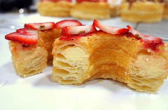 可颂甜甜圈  目前,可颂甜甜圈是全球别出心裁的美食排行榜上绝对的第一名。其他的美食都渴望打破这种用羊角面包制成的甜甜圈所带来的流行。美国纽约的多米尼克 安塞尔烘焙坊拥有该产品的商标权。人们会在这里排长队等待着5美元(人民币约30元)一个的可颂甜甜圈,且每人限购两个。如果您不想排长队又愿意多花些钱,您可以花30美元左右(人民币约183元)在克雷格列表网站上购买一个。全球许多国家和地区都有名字各不相同的类似产品。"