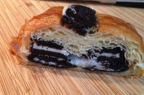 饼干可颂面包(Crookie)  Crookie是一种一半是饼干一半是羊角面包的新兴甜点。加拿大多伦多的克拉夫塔甜点咖啡馆率先将碎块状的奥利奥充入羊角面包团里制成这种点心。它的来历和Townie相似,当地的杂志希望点心师傅能创作一种能与可颂甜甜圈抗衡的美食。美国最大点评网站“Yelp”的评论员称其为天堂美味。美国广播节目《早安美国》和英国《每日邮报》都有相关报道。"
